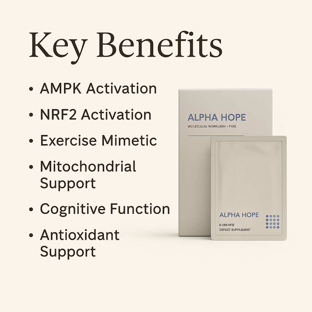 - Cellular energy & “Hope Molecules” – The combination of H₂ and PQQ helps activate key metabolic pathways (such as PGC-1α), which are involved in energy production and mitochondrial biogenesis.