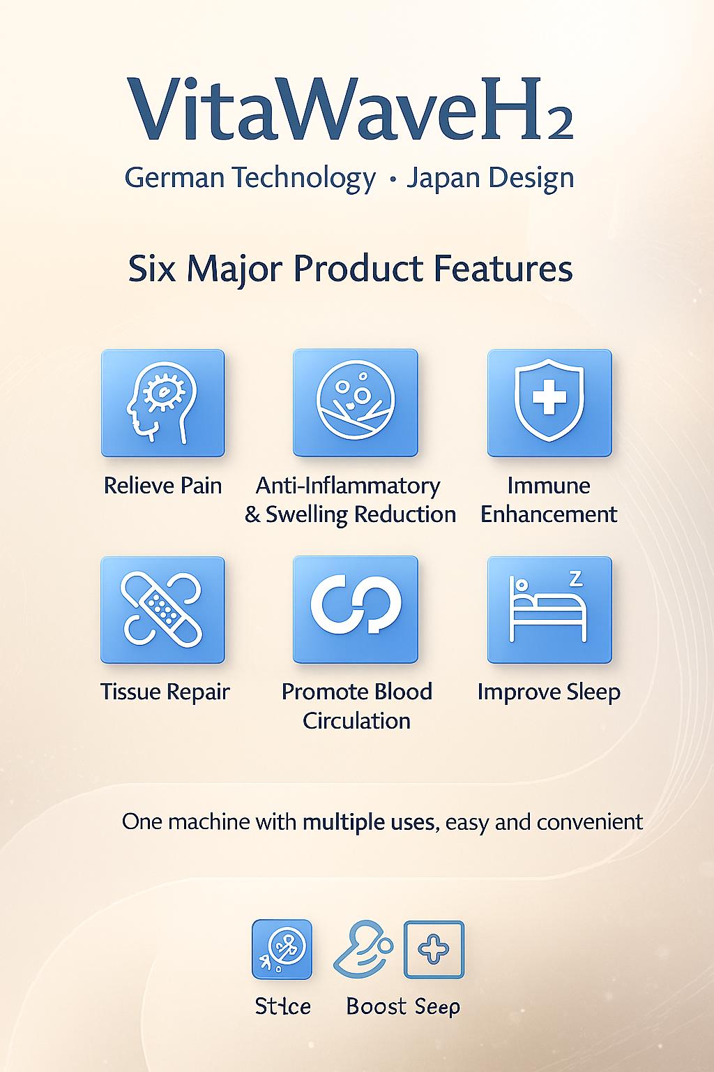 VitaWaveH2 — Dual-Function Schumann Wave Therapy + Hydrogen Inhalation German Technology · Japan Design